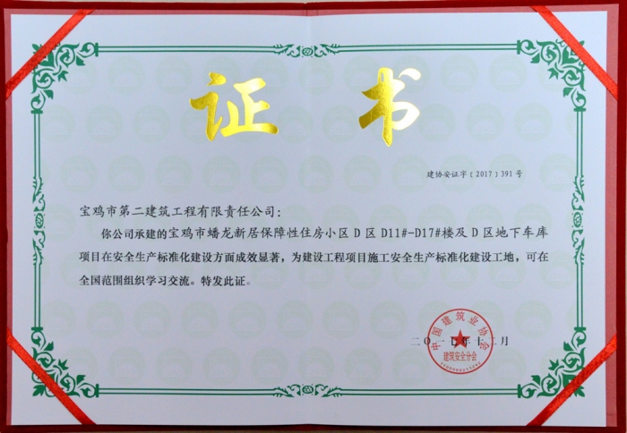 全國(guó)安全生產(chǎn)標(biāo)準(zhǔn)化建設(shè)工地(寶雞市蟠龍新居保障性住房小區(qū))