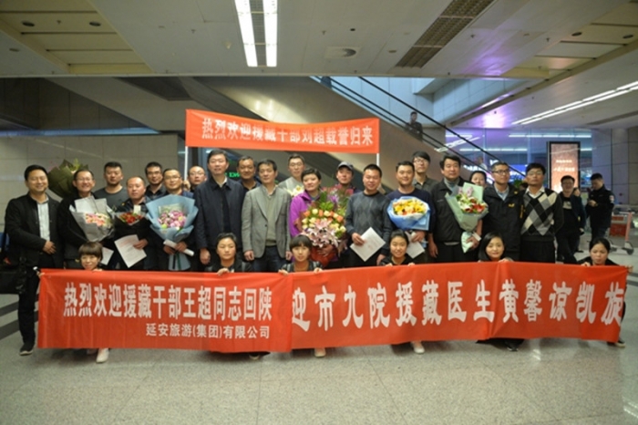 10月27日,陜西省委組織部、人社廳在咸陽國際機(jī)場為2017年第四批短期援藏16名干部舉行了簡短而熱烈的接機(jī)儀式,歡迎援藏干部凱旋歸來,公司援藏干部劉超同志在列。寶雞市城鄉(xiāng)建設(shè)規(guī)劃局人教科科長李泉、公司黨委書記景旭東、黨群工作部經(jīng)理沈?yàn)槊駞⒓觾x式。