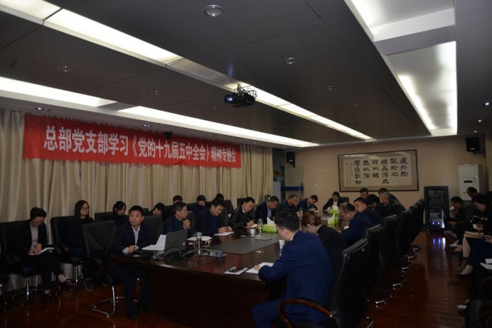 2020年11月10日晚,公司總部黨支部組織召開學(xué)習(xí)貫徹《黨的十九屆五中全會(huì)》精神專題會(huì)。公司董事長(zhǎng)、黨委書記胥立、班子成員及各部門相關(guān)黨員干部共計(jì)30余人參會(huì),會(huì)議由總部黨支部書記沈?yàn)槊裰鞒帧?/span>