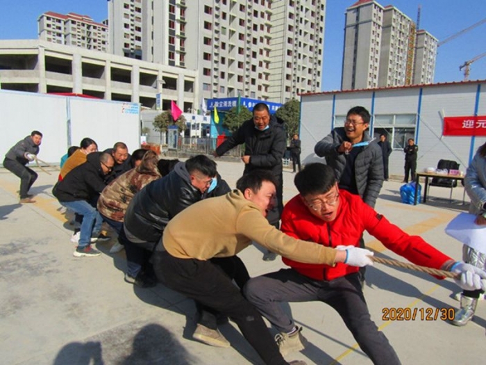 2020年12月31日,秦漢和苑項(xiàng)目部聯(lián)合西安國(guó)采、陸港·金海岸兩個(gè)兄弟項(xiàng)目在秦漢和苑項(xiàng)目生活區(qū)內(nèi)開展了“迎新年·慶元旦”文體活動(dòng)。70余名項(xiàng)目部員工參加。