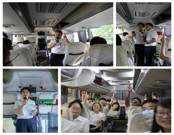 在前往鳳縣革命紀念館的路途中,嘹亮的紅色歌聲回蕩在群山之間,車廂內大家熱情高漲,通過黨史知識問答、紅色歌曲傳唱、紅色詩詞朗誦等互動活動,一同重溫黨的歷史,表達對黨的熱愛和祝福。