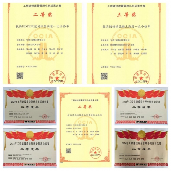 近日,從中國建筑業(yè)協(xié)會、中國施工企業(yè)管理協(xié)會、陜西省質(zhì)量協(xié)會、陜西省建筑業(yè)協(xié)會傳來喜訊,集團公司7項成果獲得國家級質(zhì)量管理小組優(yōu)秀成果稱號,其中二等獎6項、三等獎1項。