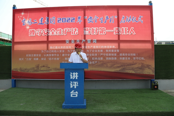 “安全生產(chǎn)月”活動(dòng)領(lǐng)導(dǎo)小組副組長、副總工程師、工程管理部經(jīng)理郭為群主持儀式。