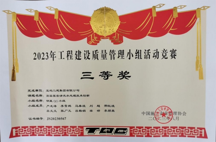 最終,碧水潤園QC小組“提高衛(wèi)生間反坎一次驗(yàn)收合格率”榮獲2023年工程建設(shè)質(zhì)量管理小組活動(dòng)競賽一等獎(jiǎng),技術(shù)質(zhì)量部QC小組“提高屋面廣場磚施工驗(yàn)收合格率”榮獲2023年工程建設(shè)質(zhì)量管理小組活動(dòng)競賽三等獎(jiǎng),明星QC小組“高層泵管清洗水處理技術(shù)創(chuàng)新”榮獲2023年工程建設(shè)質(zhì)量管理小組活動(dòng)競賽三等獎(jiǎng)。