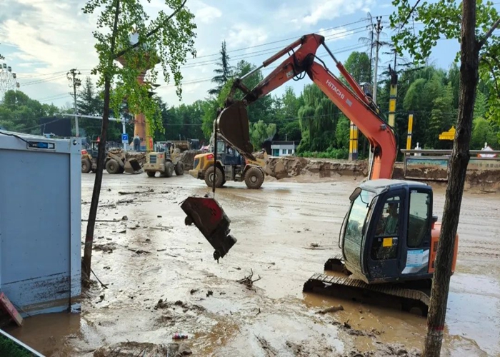 隨后并調(diào)度挖掘機等大型機械設(shè)備,緊密配合渭濱區(qū)政府、市住建局安排部署開展清淤清障,道路疏通,抽排管道內(nèi)積水等工作。