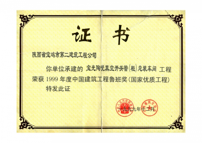 1999年魯班獎(jiǎng)(寶光陶瓷真空開關(guān)柜)